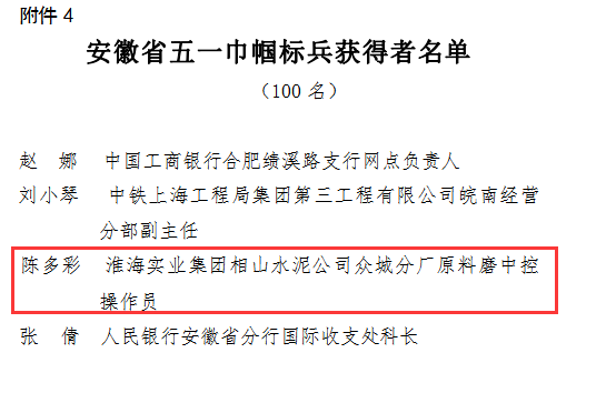 3月11日,筆者從淮海實業集團了解到,相山水泥女職工陳多彩,被安徽省總工會評為“安徽省五一巾幗標兵“。陳多彩,淮海實業集團相山水泥眾城分廠原料磨中控操作員。自工作以來她始終奮戰在一線,認真學習理論知識,總結立磨操作經驗,不斷調整優化生產參數,將原料磨的產量提至470噸/時,電耗降到14kwh/t以下。結果證明價值,能力創造業績,陳多彩在篤定與堅守中,濃墨渲染著火一樣的青春
