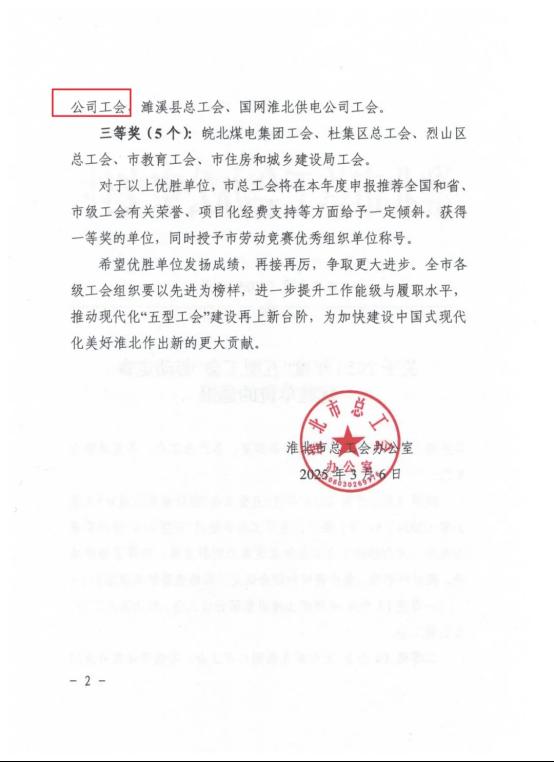 “五型工會”勞動競賽二等獎