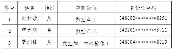 宿州市祁南工貿(mào)有限責(zé)任公司于2025年5月9日發(fā)布招聘公告、開展招聘工作,現(xiàn)面試、組織考察、體檢等工作已結(jié)束,經(jīng)研究,擬錄用人選如下: