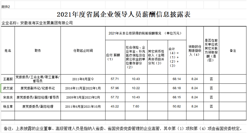 2021年度省屬企業負責人薪酬信息披露