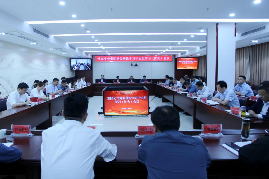 5月9日上午,淮海實業集團召開黨委理論學習中心組2024年第5次學習(擴大)會議暨專題黨課報告會,集團公司領導王振江、羅偉、王雪峰、翟建廷出席會議。