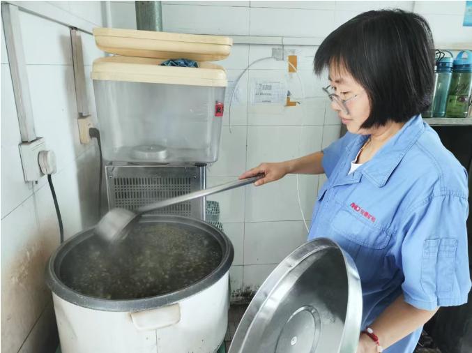 緊扣高溫季節保障需求,切實把“清涼”送到生產一線。在車間增設冷飲機,供應礦泉水、綠豆湯等清涼飲品,構建“即時解暑、全天候保障”服務體系。組織機電維修工對車間風扇、空調等,開展全覆蓋檢修,保證設備正常運轉,以“精準服務”讓職工感受“家”的溫暖。